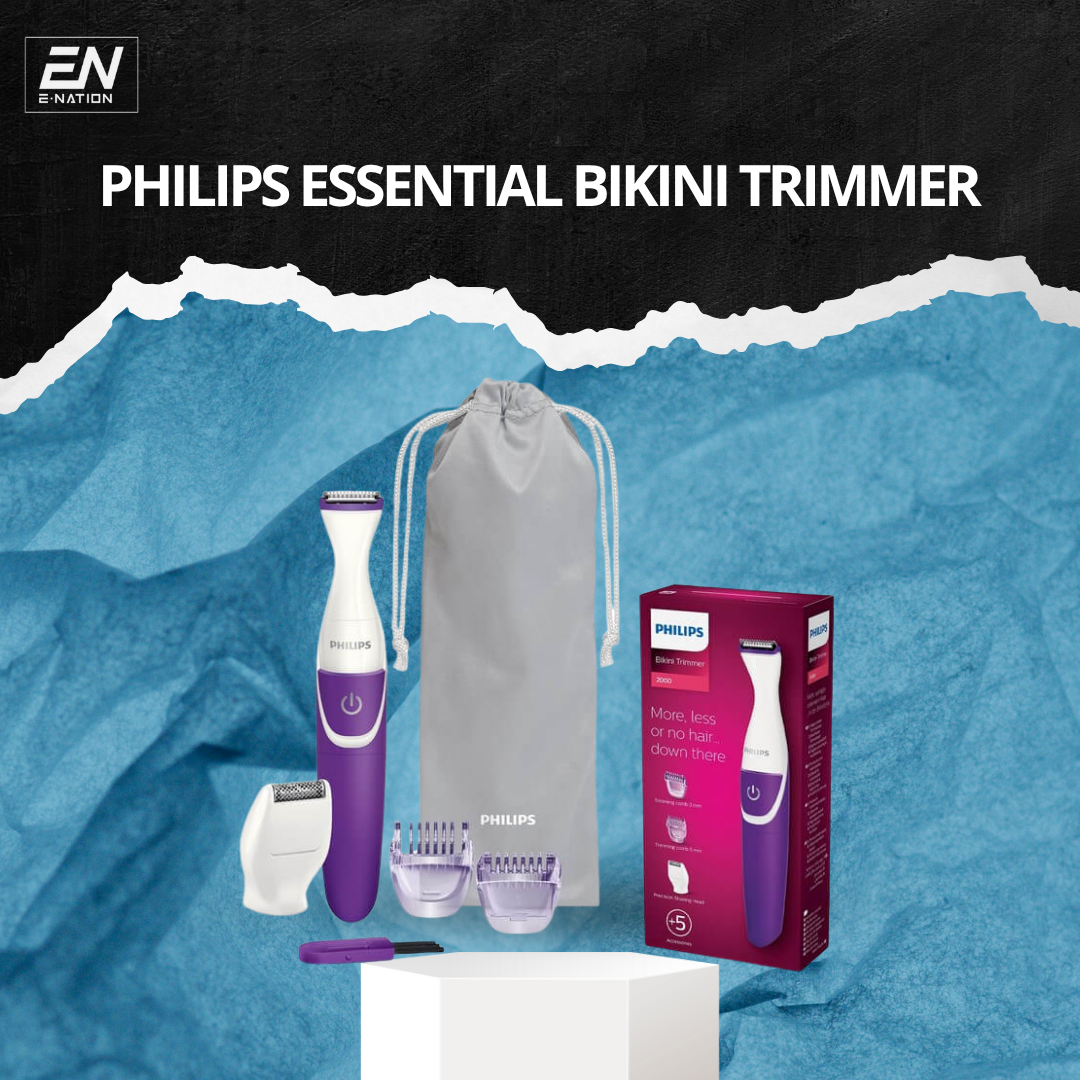 The Philips Essential Bikini Trimmer offers safe, comfortable trimming with precise blades, multiple attachments, and a compact design — perfect for quick and gentle bikini-line care.