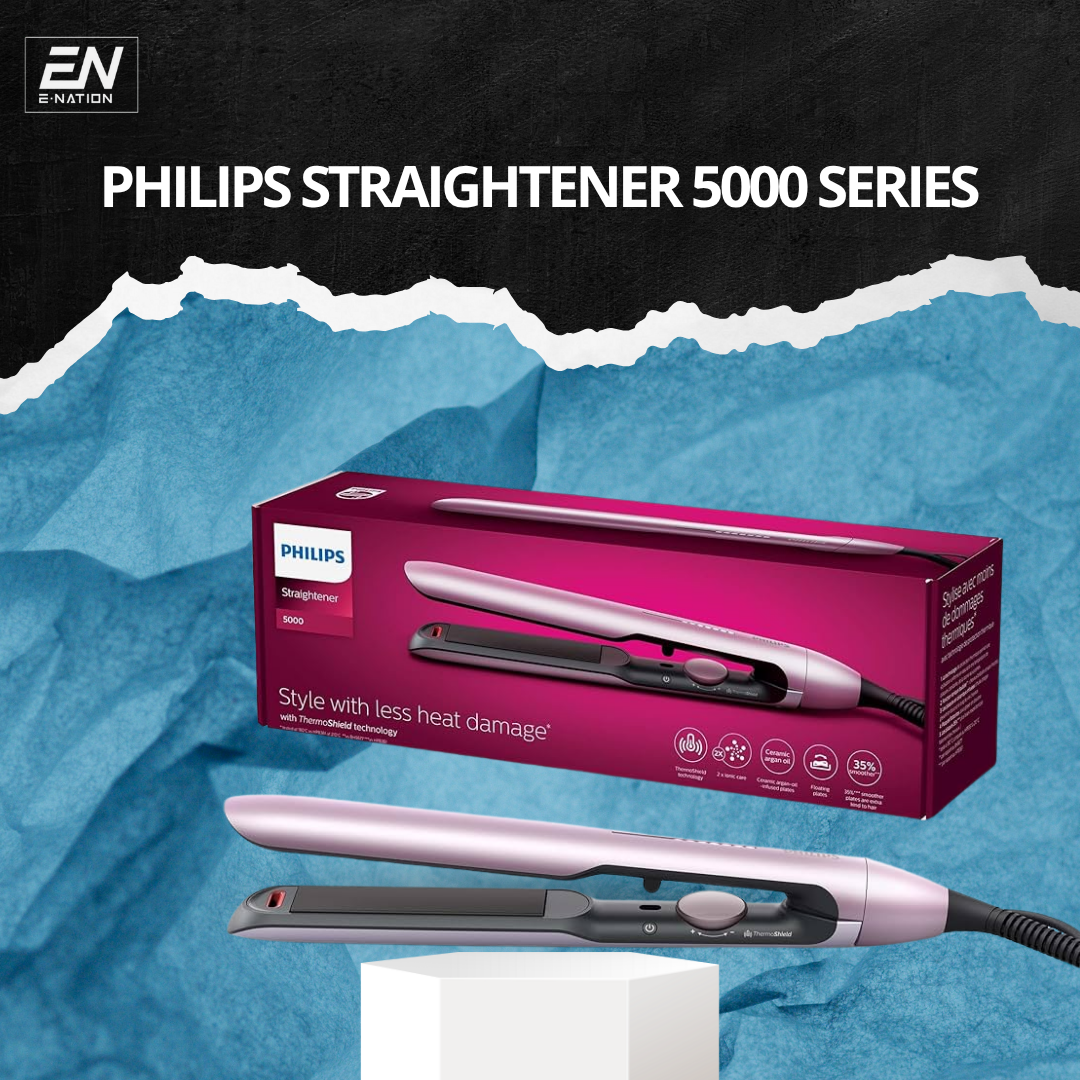 The Philips Straightener 5000 Series is designed for effortless, damage-reduced styling with advanced heat technology and smooth-gliding plates. Perfect for daily straightening, touch-ups, or polished looks with long-lasting shine.