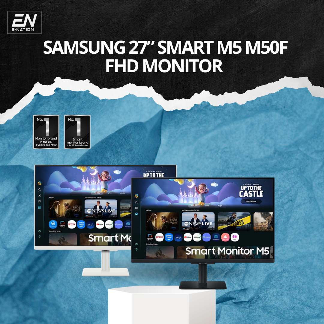 The Samsung 27” Smart Monitor M5 M50F delivers an all-in-one experience for productivity and entertainment. With integrated streaming apps, wireless mirroring, and PC-free functionality, it’s designed for modern setups that need versatility and simplicity.
