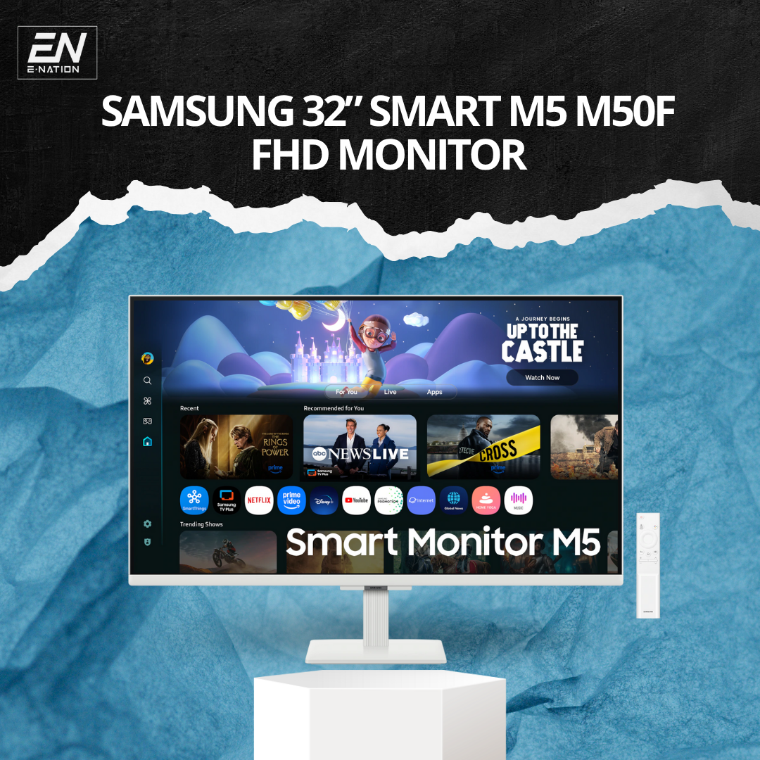 The Samsung 32” Smart Monitor M5 M50F combines the capabilities of a monitor and a smart TV into one clean, all-in-one display. Ideal for modern workspaces, dorm rooms, studios, and hybrid workers, it delivers powerful productivity features and effortless streaming in a minimalist design.